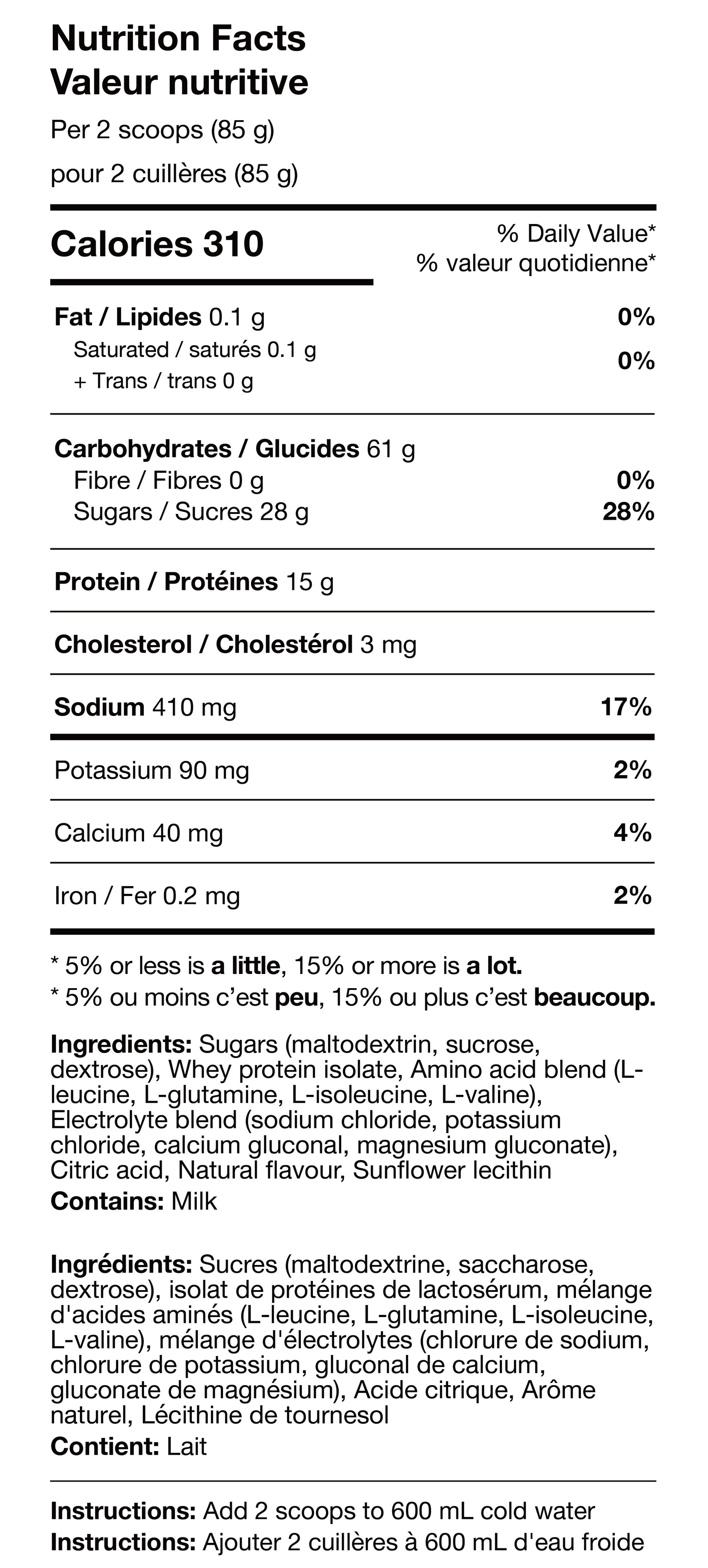 RECHARGE is designed to replenish muscle glycogen levels, repair and build muscle tissue, and boost your immune system after a workout. This drink contains fewer carbohydrates, to help you recover while trying to stay lean.