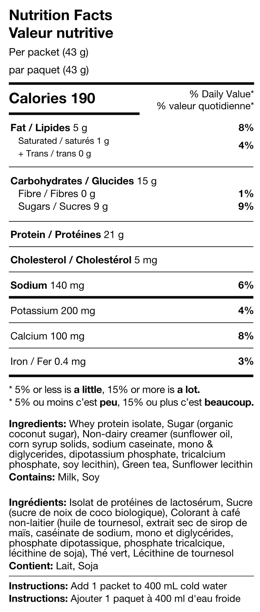 How to use: Add entire packet to 400mL/14oz cold water and shake.